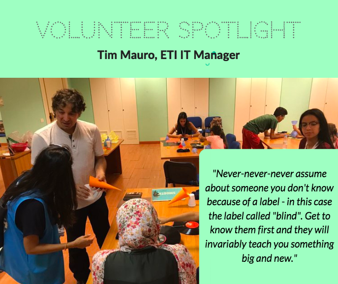 I have come to fully appreciate the capabilities and extraordinary gifts possessed by the folks that ETI serves. I've been honored to travel to Lebanon as a volunteer and immerse in a new culture and way of life. My biggest takeaway is never-never-never assume about someone you don't know because of a label - in this case the label called "blind". Get to know them first and they will invariably teach you something big and new.